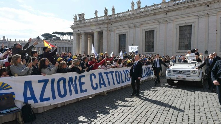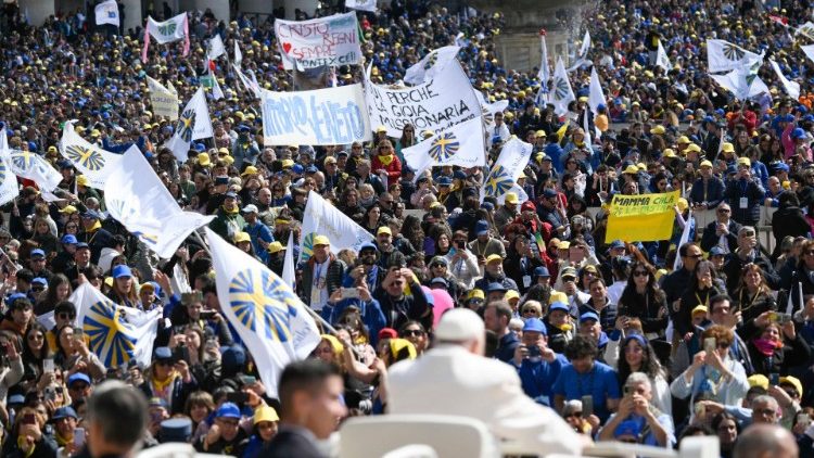 У четвер, 25 квітня 2024 р. Папа Франциск зустрівся на площі Святого Петра у Ватикані з членами та друзями мирянської організації «Італійська Католицька Акція» з нагоди їхнього національного з’їзду на тему: «З розпростертими обіймами». У своєму слові до понад 50 000 учасників зустрічі Святіший Отець зосередився на трьох типах обіймів: обійми, яких бракує, які спасають і обійми, які змінюють життя.