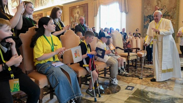 Як розповів о. Марцін Шмідт, генеральний секретар фундації, Святіший Отець прийняв їх з великою доброзичливістю, «справді, немов дідусь, який обіймає своїх онуків». Після того, як Папі представили цих дітей, між якими були діти з України, з Палестини, які втратили кінцівки, «але не перестали мріяти», він поспілкувався з ними, розпочавши розмову українським християнським привітанням: «Слава Ісусу Христу!». В зустрічі взяла участь дванадцятирічна Яна, яка втратила дві ноги, постраждавши під час російського обстрілу вокзалу в Краматорську, а нещодавно стала відомою на ввесь світ, взявши участь у Бостонському марафоні.