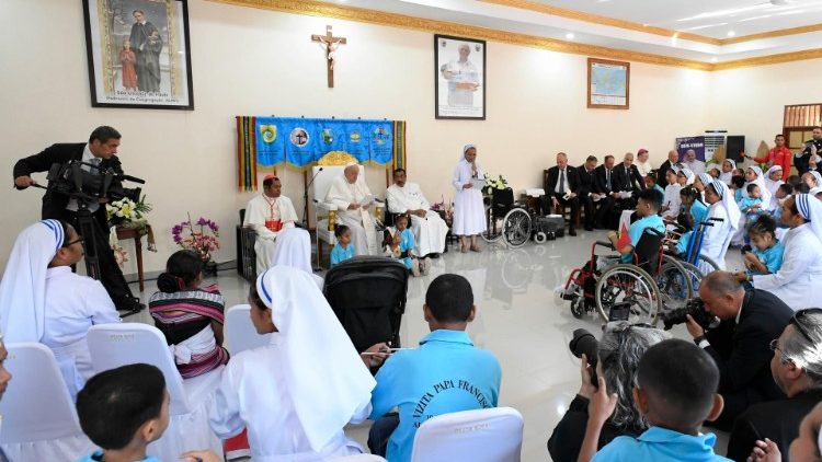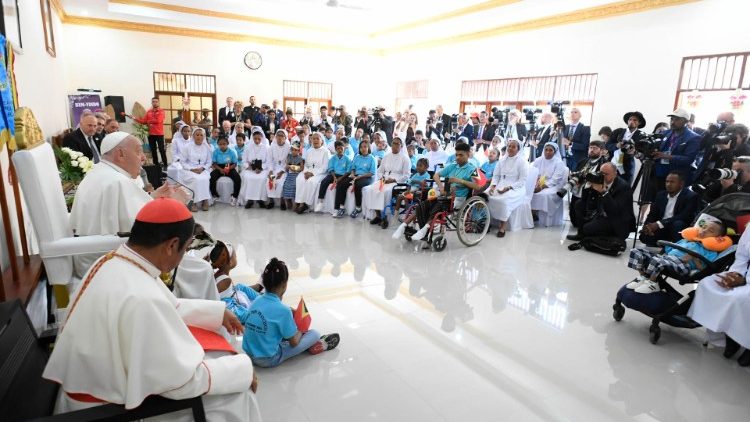 Дев’ятий день 45-ї Апостольської подорожі Папи Франциска та його другий день перебування в Східному Тиморі розпочався зустріччю з дітьми з інвалідністю. Вранці, 10 вересня 2024 р., він завітав до школи «Irmãs Alma», яку провадить Згромадження Сестер ALMA. ALMA – це акронім, який означає «Асоціація місіонерів мирян».