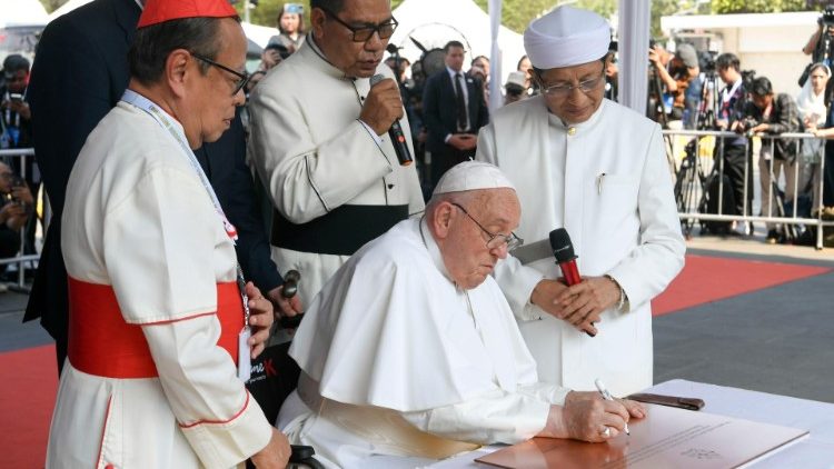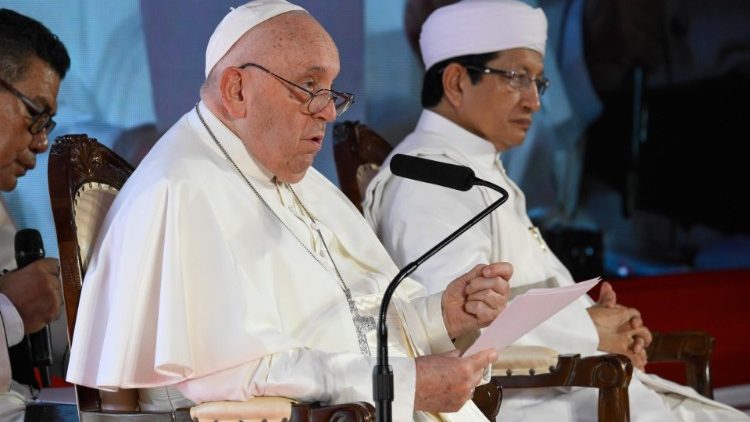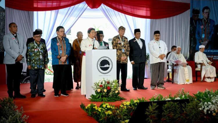На початку Папа пригадав, що дану мечеть спроектував християнський архітектор, що свідчить про те, що в історії та культурі індонезійського народу мечеть, як і інші місця поклоніння, є простором діалогу, взаємоповаги та гармонійного співіснування між релігіями «Це великий дар, який ви покликані плекати щодня, щоб релігійний досвід був орієнтиром для братерського і мирного суспільства, а не причиною для замкненості й конфронтації», – зазначив він.