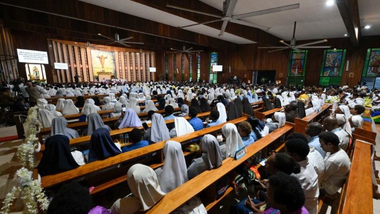 Заключною подією другого дня перебування Єпископа Риму в Папуа-Новій Ґвінеї стала зустріч з єпископатом, духовенством, богопосвяченими особами і катехитами Папуа-Нової Ґвінеї й Соломонових островів, яка відбулася санктуарії Пресвятої Марії, Помічниці християн, в Порт-Морсбі, до якого Папа Франциск прибув після відвідин середньої технічної школи, яку провадять католицькі черниці.