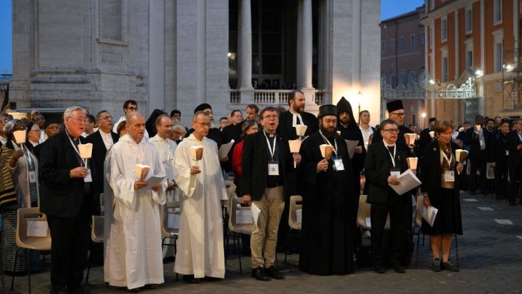 Врешті, як зазначає Наступник святого Петра, синодальність, як і єдність між християнами, потрібна для свідчення. «Щоб усі були одно, … щоб світ увірував», – молився Христос. «Екуменічний рух народився з прагнення свідчити разом, з іншими, а не осторонь один від одного, або, що ще гірше, один проти одного. І тут святі мученики нагадують нам, що сьогодні в багатьох частинах світу християни різних традицій разом віддають своє життя за віру в Ісуса Христа, проживаючи екуменізм крові. Їхнє свідчення сильніше за будь-які слова, бо єдність походить від Господнього Хреста», – наголошує Святіший Отець, нагадуючи, що ця асамблея почалася покаянним богослужінням. «Сьогодні ми, – додає він, – висловлюємо також сором за скандал християнського розділення, за скандал того, що ми не даємо разом свідчення про Господа Ісуса. Цей Синод є нагодою виправитися, подолавши стіни, які досі існують між нами. Зосередьмося на спільній основі нашого спільного Хрещення, яке спонукає нас стати учнями-місіонерами Христа, зі спільною місією. Світ потребує спільного свідчення, світ потребує, щоб ми були вірними нашій спільній місії».