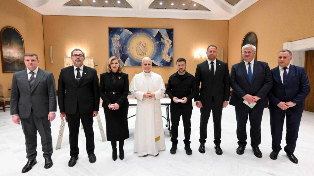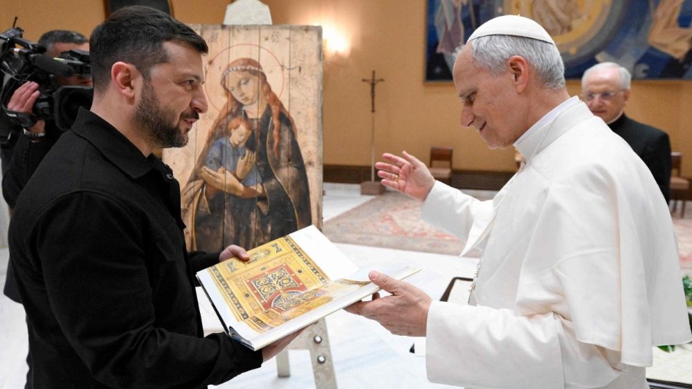 У неділю, 18 травня 2025 р., Папа Лев XIV прийняв у робочому кабінеті при залі Павла VI у Ватикані Президента України Володимира Зеленського з дружиною.