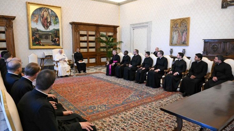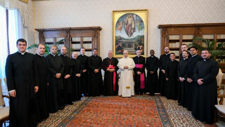 Лев XIV зазначив, що дуже цінує ініціативу Папи Франциска додати такий формаційний рік до програми підготовки майбутніх дипломатів Святого Престолу. Він нагадав їм заклик, з яким звернувся до Апостольських нунціїв, зустрічаючись з ними з нагоди Ювілею, заохочуючи їх залишатися «пастирями, які стоять ногами на землі», втілюючи образ «священника на служінні Папі в дипломатичних представництвах». «Дбання про всі Церкви – відповідно до ввіреного мені служіння – потребує вірного й незамінного служіння Державного Секретаріату та Папських представників, з якими ви незабаром почнете співпрацювати», – сказав Святіший Отець.