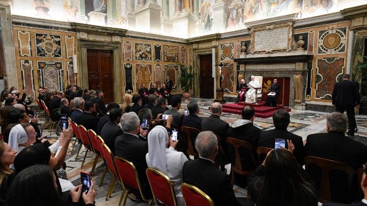 За словами Святішого Отця, це спільне паломництво до Риму з нагоди Ювілею світу освіти є «видимим знаком уз співпраці та прихильності», якими повинна відзначатися така мережа, що об’єднує понад сотню інституцій, ставлячи за мету поступ вищої католицької освіти на служінні суспільству, «створюючи простір зустрічі між вірою та культурою, щоб звіщати Євангеліє в університетському середовищі». «Це спільне паломничання, – сказав він, – вже багато про що говорить, адже виражає саму місію, для якої університет зродився в лоні Католицької Церкви: бути “незрівнянним центром креативності та поширення знань для блага людства” (святий Іван Павло II, Апостольська конституція Ex Corde Ecclesiae, 1), в якому “спільні зусилля розуму і віри дозволяють людям досягти повної міри своєї людяності” (там же, 5)».