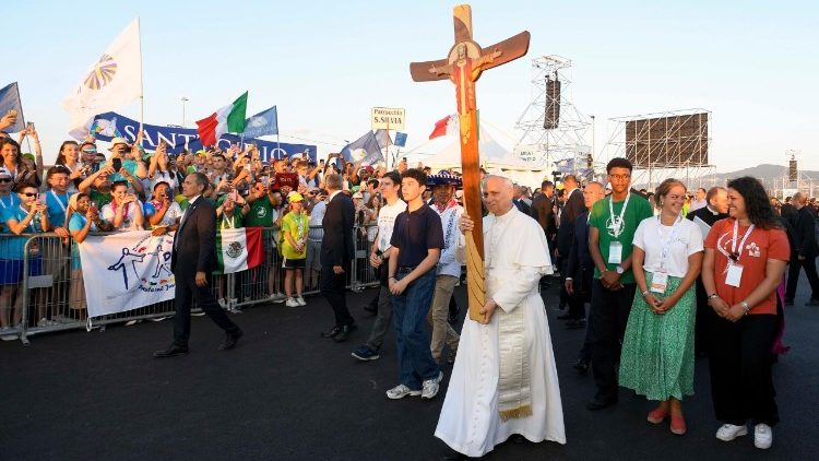 Дорогі юнаки та дівчата, перед обличчям страждань і надій світу, зосередьмо погляд на Ісусі. Коли Він мав померти на хресті, Він довірив Діву Марію Іванові як матір, а його – Їй як сина. Цей найвищий дар любові призначений для кожного учня, для всіх нас. Тому заохочую вас прийняти цей святий зв'язок з Марією, Матір'ю, сповненою любові та розуміння, плекаючи його, зокрема, через молитву Розарію. Так у кожній життєвій ситуації відчуватимемо, що ми ніколи не самотні, а завжди є улюбленими дітьми, прощеними та підбадьореними Богом. Про це з радістю свідчіть!