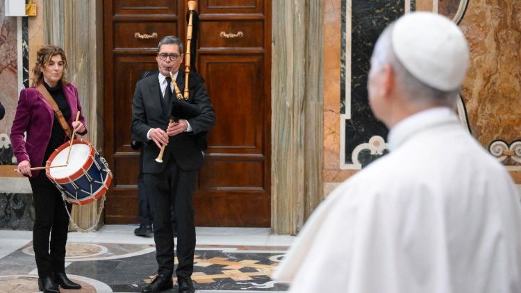 Звертаючись до присутніх на аудієнції, Святіший Отець подякував організаторам, спонсорам концерту та фундації Gravissimum Educationis, яка супроводжує цю ініціативу.