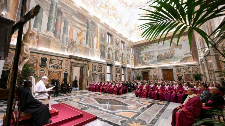 Зустрічаючись із ними в Климентинському залі Апостольського палацу, Святіший Отець подякував за працю, яка є «цінним служінням вселенській судовій функції, що належить Папі». Свою подяку він поширив на всі церковні трибунали в світі, зауваживши, що досвід служіння суддею, який він мав нагоду набути, дозволяє йому ще краще зрозуміти церковну місію їхньої праці.