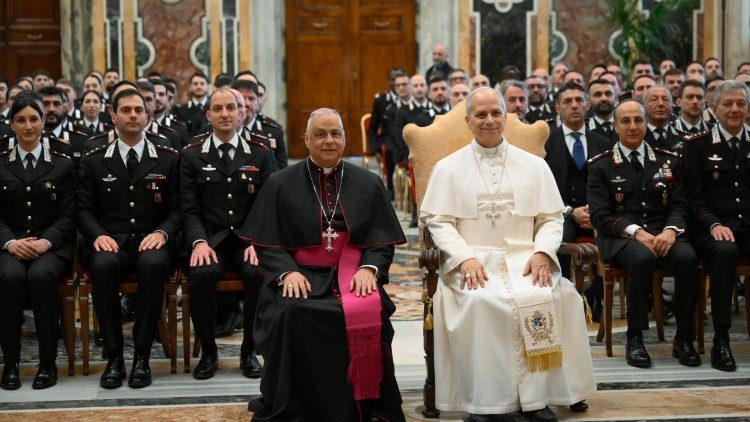 «Дякую вам за службу, яку ви виконуєте, зокрема довкола Ватикану та в місті Римі. Бажаю вам завжди виконувати її з чистим сумлінням, залишаючись вірними принципам і правилам Корпусу карабінерів, а також як християни, вірними Євангелію, що наповнює кожен намір і кожну дію любов’ю Христа», – побажав на завершення Лев XIV.