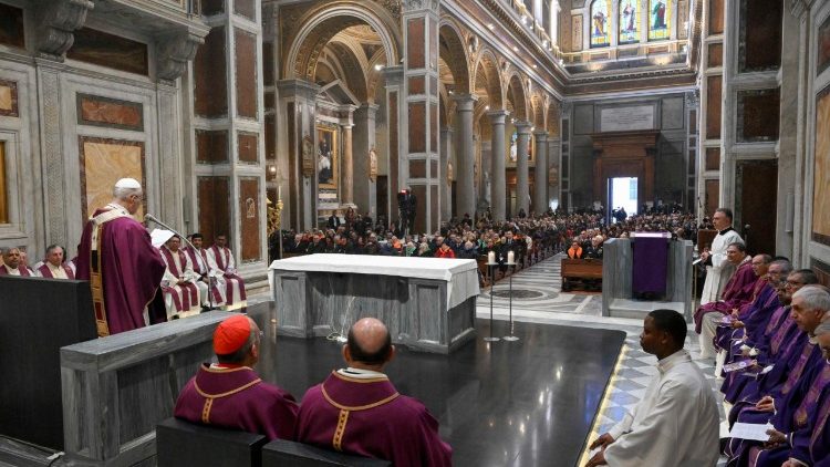 Прибувши вранці до храму, Святіший Отець отримав привітання від різних парафіяльних груп, між якими були представники осередку слухання, молодь, учасники катехизації, вбогі, що отримують тут підтримку, а також пʼять катехуменів, які приймуть таїнства християнського втаємничення у пасхальну ніч. О 9:00 Папа очолив Святу Месу першої неділі Чотиридесятниці.