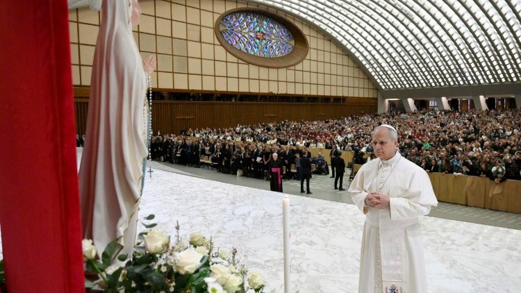 У привітаннях різними мовами наприкінці загальної аудієнції Папа Лев XIV згадав святих Кирила та Методія, покровителів Європи, закликав до допомоги постраждалим від сильних повеней у Колумбії, а також нагадав про духовне значення Великого Посту.