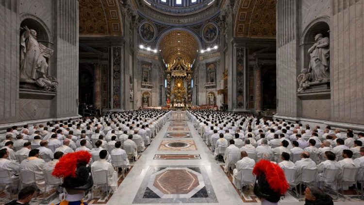 «В перший рік, коли я очолюю Святу Месу мира як Єпископ Риму, прагну разом з вами замислитися над місією, до якої Бог посвячує нас як свій народ», – сказав Папа Лев XIV на початку проповіді під час Святої Меси з освяченням мира, яку він очолив у базиліці Святого Петра у Ватикані у Великий четвер, 2 квітня 2026 р., і на яку зібралося духовенство Римської дієцезії. Молитовна зустріч розпочалася Літургією Годин, а після проповіді священники відновили свої обітниці. Далі відбулося освячення священних єлеїв, призначених для уділення Святих Таїнств.