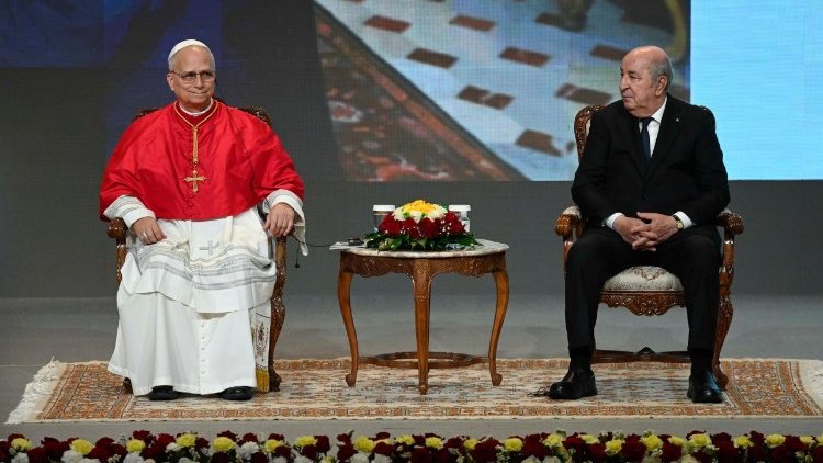 Промовляючи після вітального слова Президента Алжиру, Святіший Отець підкреслив, що прибуває як паломник миру, що прагне зустрітися зі шляхетним алжирським народом. «Ми – брати й сестри, бо маємо одного й того ж Отця на небі: глибока релігійність алжирського народу є секретом культури зустрічі та примирення, знаком якої прагне бути також і цей мій візит», – мовив Лев XIV, наголошуючи на тому, що майбутнє за тими, хто «не дає засліпити себе владою та багатством, хто не приносить у жертву особистому успіхові чи успіхові групи гідність співгромадян».