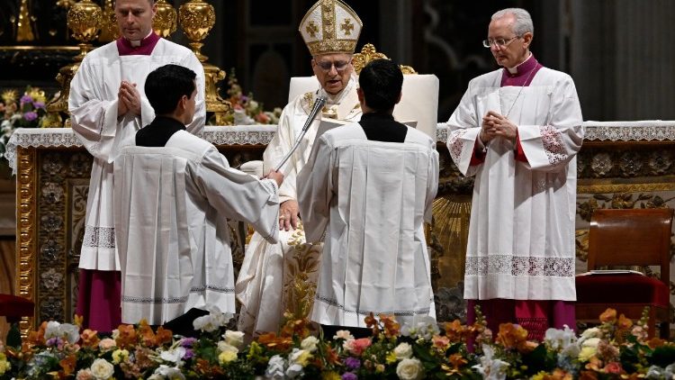 Цій місії посвячують себе сьогодні тут присутні брати й сестри, що походять з різних частин світу й незабаром приймуть Хрещення. Після тривалого шляху катехуменату вони сьогодні відроджуються у Христі, щоб стати новими створіннями (пор. 2 Кор 5, 17), свідками Євангелія. Їм і всім нам повторімо слова, які святий Августин говорив християнам свого часу: «Проповідуй Христа, сій […], розсипай скрізь те, що зародилося у твоєму серці» (Гомілія 116).