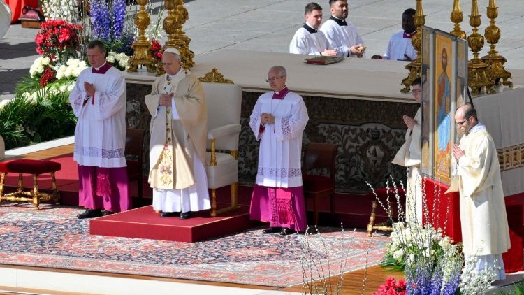 Як зауважив Лев XIV, Господня Пасха дарує нам надію, нагадуючи, що «у Воскреслому Христі нове створіння можливе кожного дня». День Христового воскресіння відсилає нас до створення, до першого дня, коли Бог створив світ, звіщаючи, що «нове життя, сильніше від смерті, проростає для людства». «Пасха – це нове створення, яке здійснив Воскреслий Господь, це новий початок, це життя, яке нарешті стало вічним завдяки перемозі Бога над древнім Супротивником. Саме цієї пісні надії ми сьогодні потребуємо. І саме ми, воскреслі з Христом, повинні нести його на вулиці світу. Тож біжімо, як Марія Магдалина, сповіщаймо про це всім, несімо своїм життям радість воскресіння, щоб скрізь, де ще витає привид смерті, засяяло світло життя», – закликав Папа, побажавши: «Нехай же Христос, наша Пасха, благословить нас і дарує свій мир усьому світу!».