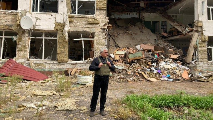 «Сьогодні вранці, – сказав він, – я зустрівся зі Святішим Отцем, аби ще раз пригадати й повторити ввесь шлях, яким я пройшов в Україні, розпочавши від Одеси через Запоріжжя до Харкова. То були особливі моменти. В Запоріжжі, коли ми поїхали на лінію фронту, де залишилося коло чотирьох тисяч людей, ми разом з католицьким і протестантським єпископами роздавали продукти дійсно виснаженим людям, які вже двісті днів живуть без електричного струму, без газу, без засобів для життя, покладаючись лише на те, що їм два рази на тиждень привезуть волонтери, які ризикують своїм життям, бо це лінія фронту, де нікого не щадять. Жоден дипломатичний паспорт там не діє».