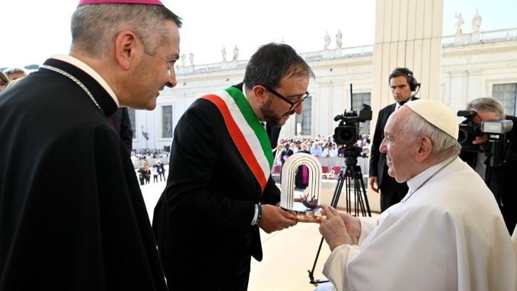 «Муніципалітет Л’Аквіли прийняв рішення присудити першу “Премію Прощення” Папі Францискові як визнання його невтомної душпастирської діяльності, натхненої примиренням», – цими словами мер міста Л’Аквіли П’єрлуїджі Бйонді пояснює значення відзнаки, врученої під час загальної аудієнції в середу, 7 вересня 2022 р., Святішому Отцеві, який в останню неділю серпня відвідував це місто, де очолив святкування відпустових урочистостей, відомих як «Целестинове прощення».
