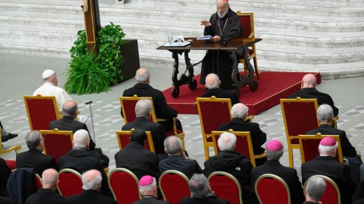 «Для вашої та моєї втіхи, Святіший Отче, всечесні отці, браття і сестри, ці роздуми будуть зосереджені цілком і тільки на Богові. Богослов’я, тобто розмова про Бога, не може залишатися поза реальністю Синоду, як і не може залишатися стороннім для кожного іншого моменту життя Церкви. Без теології віра легко стала б мертвим повторенням; їй бракувало б головного інструменту для її інкультурації», – сказав кардинал Раньєро Канталамесса на початку третьої проповіді з нагоди Великого Посту, яку він 17 березня 2023 р. виголосив у залі Павла VI для Папи та працівників Римської Курії. У ній він зосередився на особливостях оновлення теології, яка проголошує, що Бог є любов’ю, як запоруки того, щоб Боже слово не було лише ідеєю. В цьому контексті йшлося про таїнства нашої віри – Пресвяту Трійцю, Воплочення та страсті Христа – у світлі Божого об’явлення.