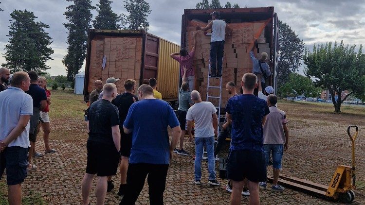 На світанку 30 серпня 2023 р. 30 чоловіків, які знайшли дах над головою у притулку, відкритому з доручення Папи Франциска при Ватикані, допомогли у завантажуванні та перевезенні цієї допомоги на території собору Святої Софії, звідки через кілька днів вона буде відправлена в Україну. Кардинал Краєвський підкреслив символічну цінність солідарності, яку виявили гості нічліжки, які без зволікання погодилися допомогти в якості волонтерів у відправленні цього вантажу. «Всі знають про призначення цих продуктів, всі з радістю запропонували допомогу, незважаючи на те, що йшлося про кількагодинну важку працю», – із захопленням додав він.