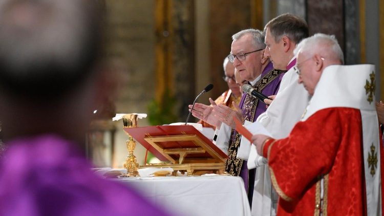 «Сьогодні наше серце перебуває в мовчазному спогаді та молитві. Ми звершуємо Святу Євхаристію та поминаємо жертви Голодомору. Трагічне винищення голодом, навмисно спричинене в Україні в 1932-1933 роках коштувало життя мільйонам чоловіків, жінок і дітей. І причиною цього було не природне явище, а ненависть, несправедливість, байдужість і зловживання владою», – зазначив кардинал П’єтро Паролін, Державний Секретар Святого Престолу, розпочинаючи свою проповідь під час Святої Меси, яку він у четвер, 20 листопада 2025 року, очолив у храмі Сан-Андреа-делла-Валле. Євхаристійне богослужіння, приурочене до поминання жертв Голодомору, яке організувало Посольство України при Святому Престолі та Суверенному Мальтійському Ордені,звершувалося в намірі звільнення всіх полонених та за справедливий і тривалий мир для України.