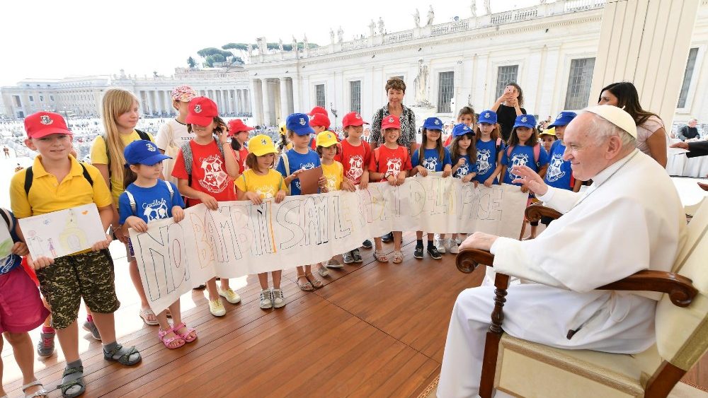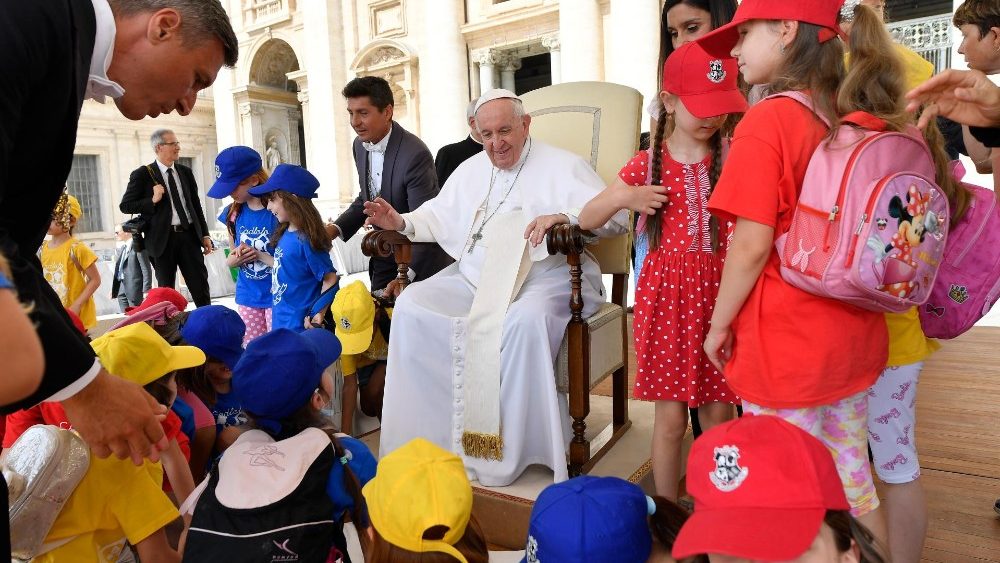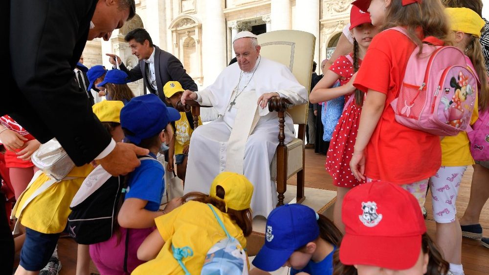 Серед обіймів і рукостискань, якими завершуються середові загальні аудієнції, протягом останніх тижнів зустрічаються також групи українців, які знайшли притулок у Італії, рятуючись від війни. Не стала винятком і зустріч з паломниками в середу, 22 червня 2022 року. Папа Франциск сам повідомив про те, що в панорамному автомобілі під час проїзду між секторами з паломниками його супроводили діти з України.