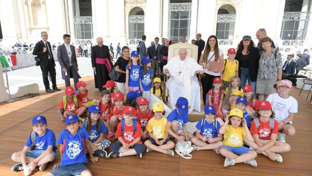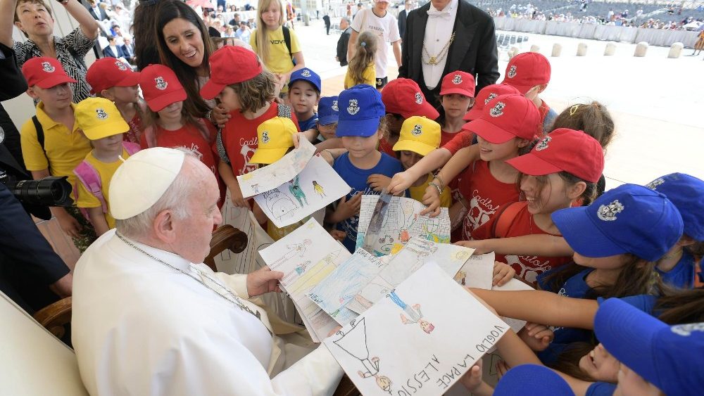 В автомобілі разом зі Святішим Отцем були лише кілька представників з більшої групи дітей. Римська початкова школа ім. Альберто Кальдоло, розташована неподалік площі Святого Петра, прийняла наприкінці березня двадцятку дітей, що втекли з України, рятуючись від війни. Вдалося сформувати цілий український клас, який отримав можливість продовжити навчання згідно зі шкільною програмою українського Міністерства освіти. Таким чином, війна не стала причиною втратити навчальний рік, як також досвід перебування разом з ровесниками.
