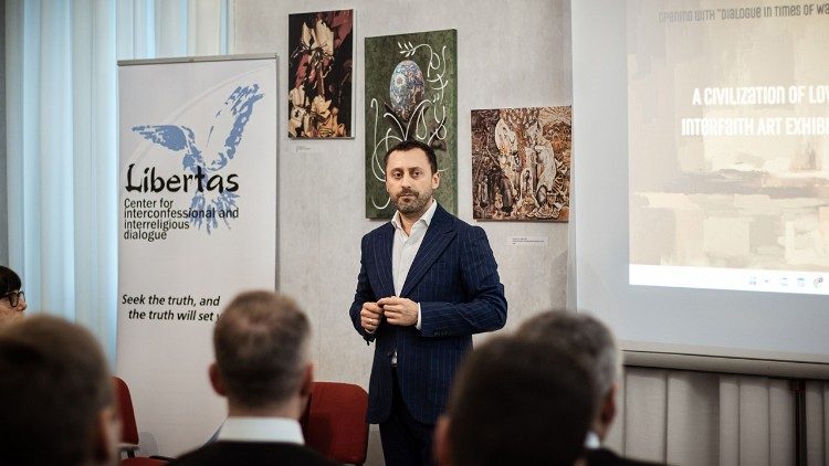 Зі вступним словом до відвідувачів виставки звернувся засновник Центру міжконфесійного та міжрелігійного діалогу «Лібертас», директор Інституту релігії та суспільства УКУ Тарас Дзюбанський, запрошуючи до уважного слухання з метою відкриття нових можливостей міжконфесійної й міжрелігійної комунікації та активної участі в дискусії. «Сумна річниця повномасштабної війни проти України, – зазначив він, – має пригадувати західному суспільству про трагізм та горе нашого народу, який, попри усі страждання залишається народом свободи та свідком нескореності духу. Освітні, культурні та суспільні процеси працюють і в цьому напрямку ми багато в чому завдячуємо саме ролі Церков та релігійних організацій. Інтелектуальні дискусії продовжуються і ми впевнені, що це великий внесок у перемогу в боротьбі з силами зла».