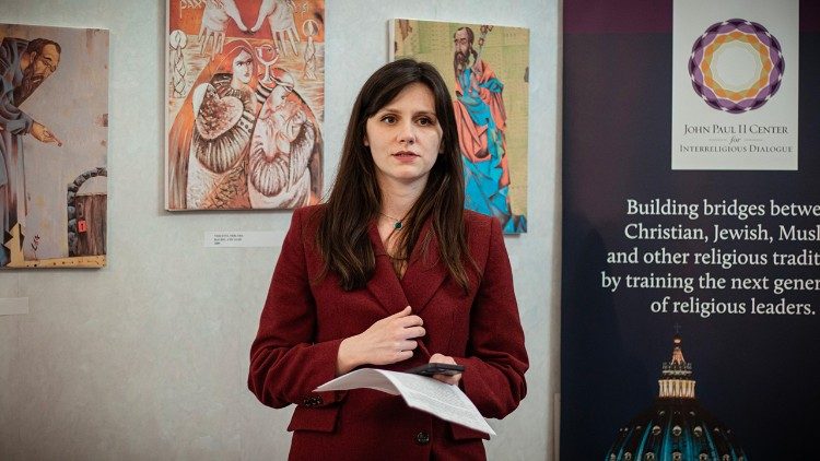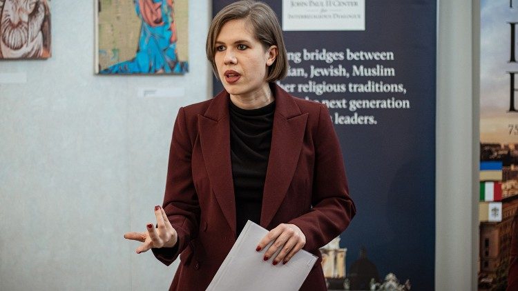 Спершу учасники прослухали доповідь Олени Комісаренко про екуменічну та міжрелігійну співпрацю під час війни в Україні. Доповідачка, зокрема, представила проєкти гуманітарної допомоги, що були реалізовані завдяки спільним зусиллям представників різних релігій. Пані Олена запевнила, що важливим компонентом міжрелігійного внеску для досягнення миру в Україні є заяви та участь релігійних лідерів в таких акціях, як нещодавній спільний візит до Ватикану. «На згадку про свою зустріч зі Святішим Отцем, яка відбулася 25 січня в Римі, члени Всеукраїнької Ради Церков і міжрелігійних організацій вручили Папі Францискові картину із зображенням мирної України, яку намалювали українські діти, – зауважила вона. – Мистецький твір у цій ситуації був вираженням духу справжньої братерської єдності і визнання релігійного плюралізму і в суспільстві мирної України, про яку ми мріємо і за яку молимося».