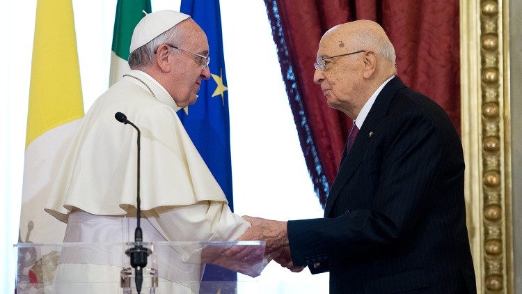 教宗方济各和纳波利塔诺总统多年来建立了友谊的关系,彼此尊重。纳波利塔诺总统首次正式访问梵蒂冈是在2013年6月8日,但教宗方济各和意大利这位前任总统首次会面则是在同一年的3月19日,那是在教宗就职大典弥撒之后。2013年11月,教宗首次前往意大利总统府拜访纳波利塔诺总统。